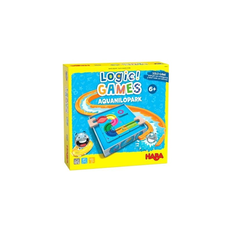 AquaniloPark de HABA es un juego individual de lógica, destreza y percepción espacial en el que guías una canica a través de toboganes modificables, resolviendo 60 desafíos que aumentan su nivel de dificultad. Ideal para niños a partir de 6 años, combina agilidad mental y pulso para lograr que la bola recorra el circuito sin salirse.