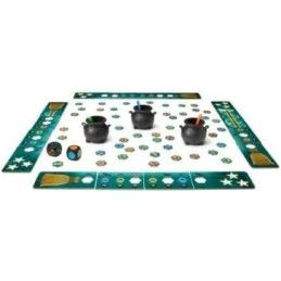 Juego infantil de memoria y estrategia donde los jugadores recolectan ingredientes mágicos para completar sus escobas voladoras, enfrentándose a desafíos y sorpresas en cada turno.