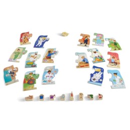 Memo de las Profesiones es un juego educativo y de memoria para los más pequeños, donde aprenderán profesiones mientras emparejan piezas de puzzle con ilustraciones y fichas de madera. Ideal para fomentar vocabulario y observación con diversión.