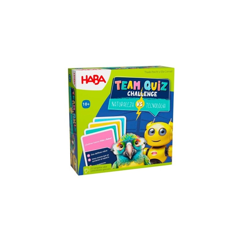 Team Quiz Challenge – Naturaleza vs. Tecnología es un juego de mesa educativo con fascinantes preguntas y tareas curiosas sobre dos temáticas que pondrán a prueba los conocimientos de cada equipo.