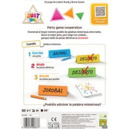 Just One es un party game cooperativo en el que tendréis que conseguir que alguien adivine una palabra misteriosa, escribiendo en secreto una pista en vuestros atriles.