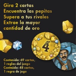 Juego de memoria en el que debemos lograr acumular la mayor cantidad de oro con la ayuda de los mineros de nuestro color. Cada jugador/a cuenta con la mina de un color, y por turnos va destapando dos cartas de la mesa. Si descubre un minero y una carta de oro de menor valor, se lo queda con el oro, si el minero es de otro jugador/a, ese jugador se queda con el oro.