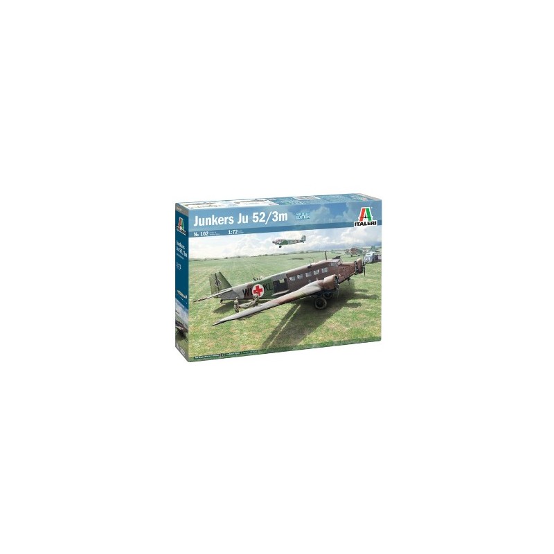 El modelo Junkers Ju‑52/3m de la marca Italeri a escala 1:72 es un kit de modelismo nivel 3, fiel réplica del clásico tri-motor alemán, ideal para modelistas que valoran tanto el montaje como la historia.
