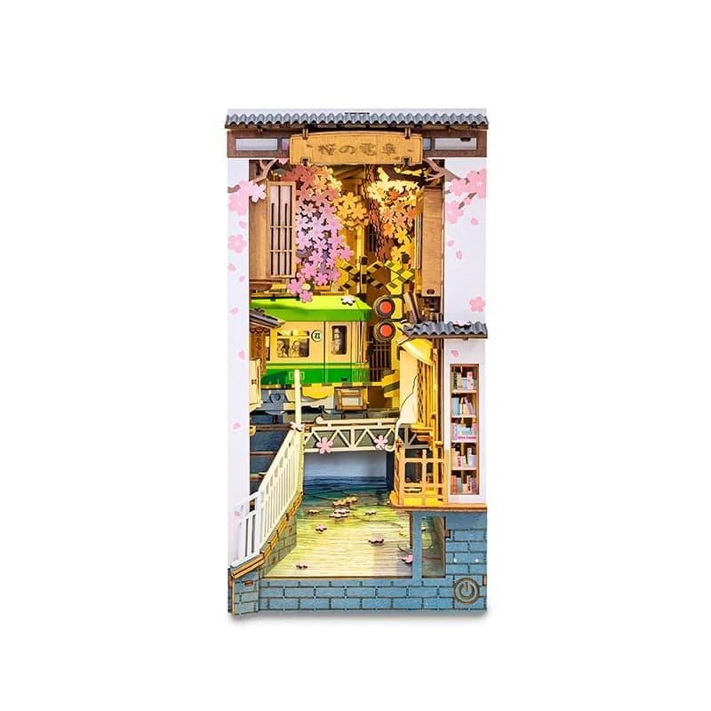 El Sakura Densya Book Nook de Rolife es un kit de construcción 3D en madera que recrea una escena primaveral de Tokio, con un tranvía cruzando un puente bajo cerezos en flor. Ideal para decorar estanterías, este proyecto DIY incluye 340 piezas y luces LED cálidas, ofreciendo una experiencia de montaje detallada y satisfactoria para mayores de 14 años.