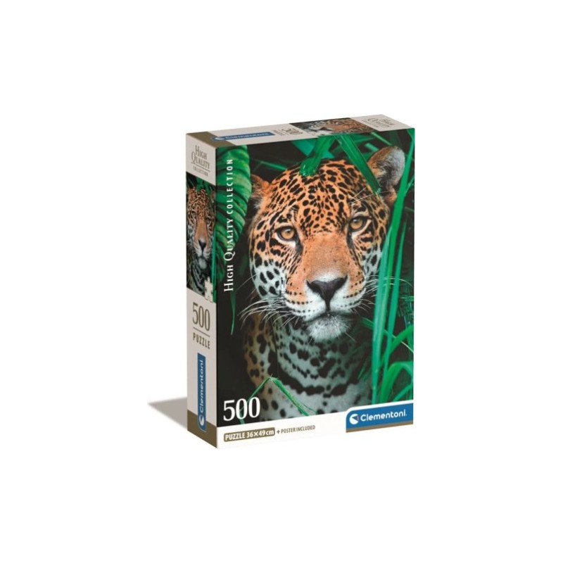 Este puzzle forma parte de la High Quality Collection de Clementoni en formato Compact Box, con una imagen vibrante y realista de un jaguar acechando en su entorno natural. Su diseño combina naturaleza, detalle fotográfico y dificultad media, ideal para sesiones relajadas de montaje.