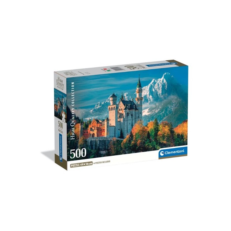 Este puzzle forma parte de la High Quality Collection de Clementoni, en formato Compact Box, y presenta una imagen espectacular del Castillo de Neuschwanstein, rodeado de bosques y montañas bávaras. Con su aire de fantasía, fue inspiración directa para el castillo de Disney, lo que lo convierte en un favorito entre aficionados a los paisajes históricos y románticos.