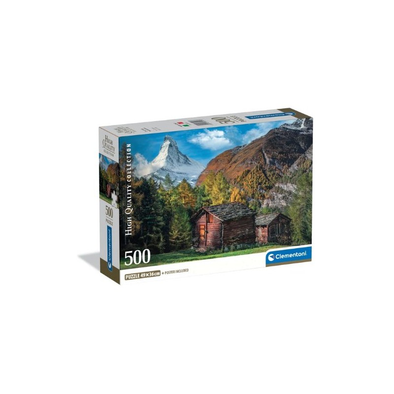 Un espectacular puzzle de 500 piezas que muestra el icónico Matterhorn suizo, perfecto para amantes de los paisajes alpinos y la fotografía natural.