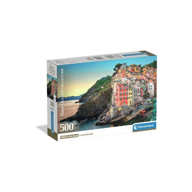 Este puzzle pertenece a la High Quality Collection de Clementoni y viene en un práctico formato Compact Box, perfecto para regalar o almacenar. La imagen representa una vista panorámica de Riomaggiore, con sus casas de colores colgadas sobre el mar y las aguas cristalinas del Mediterráneo acariciando las rocas. Un paisaje costero con encanto italiano que invita a viajar con la mente mientras se encaja cada pieza.