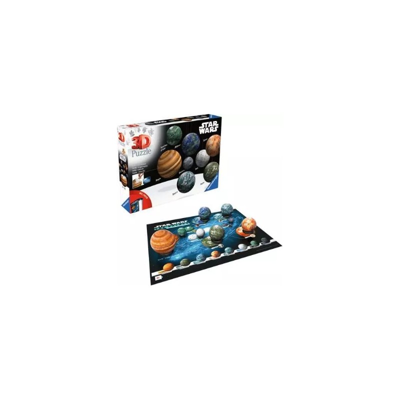 Sumérgete por completo en la galaxia Star Wars con los 3D Puzzles de Ravensburger: este set de bolas puzzle incluye los ocho cuerpos celestes más famosos de la primera trilogía de Star Wars en forma de fascinantes puzzles en 3D.